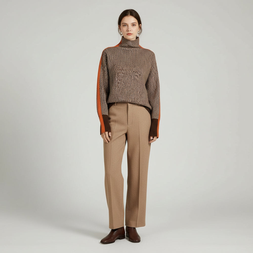 Clémence™ | Pull à col roulé à rayures contrastantes