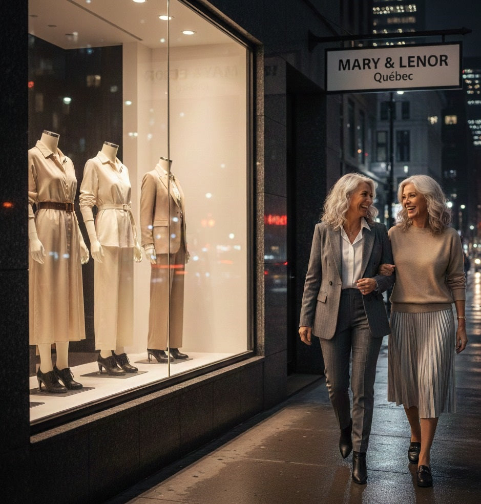 Fondée en 1982, Mary & Lenor – Québec est née du rêve partagé de deux sœurs passionnées par la mode, l’élégance et l’expression personnelle. Depuis leur enfance, Mary et Lenor passaient des heures à créer vêtements, réinventer pièces anciennes et imaginer un style qui leur ressemblait.