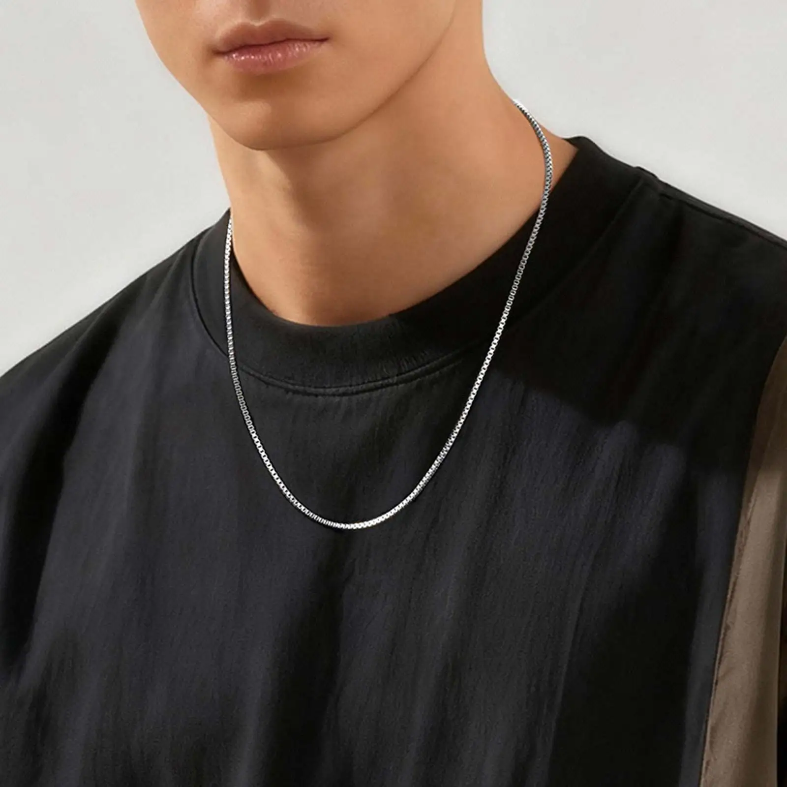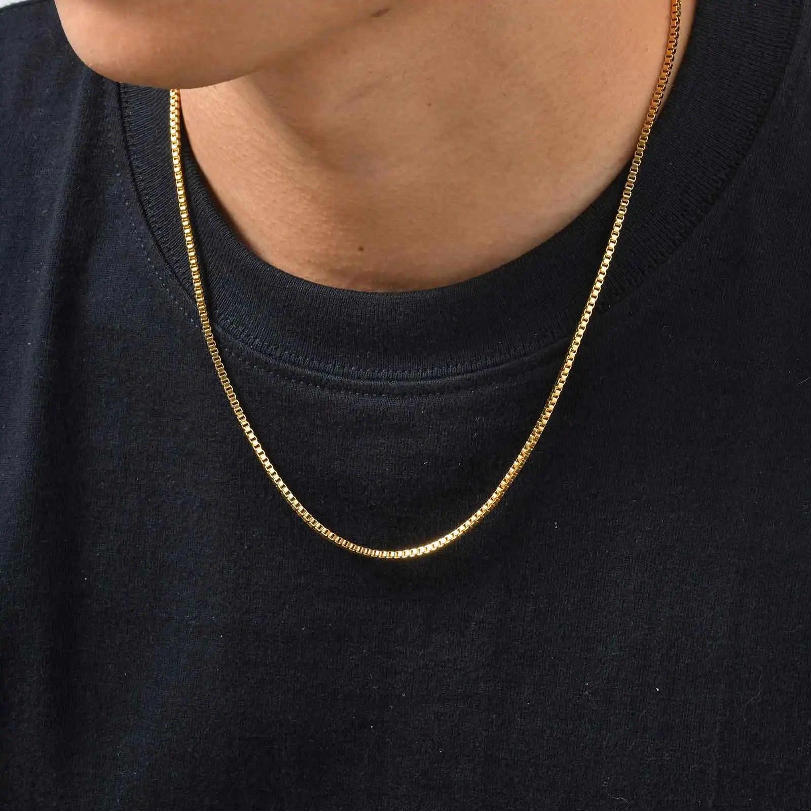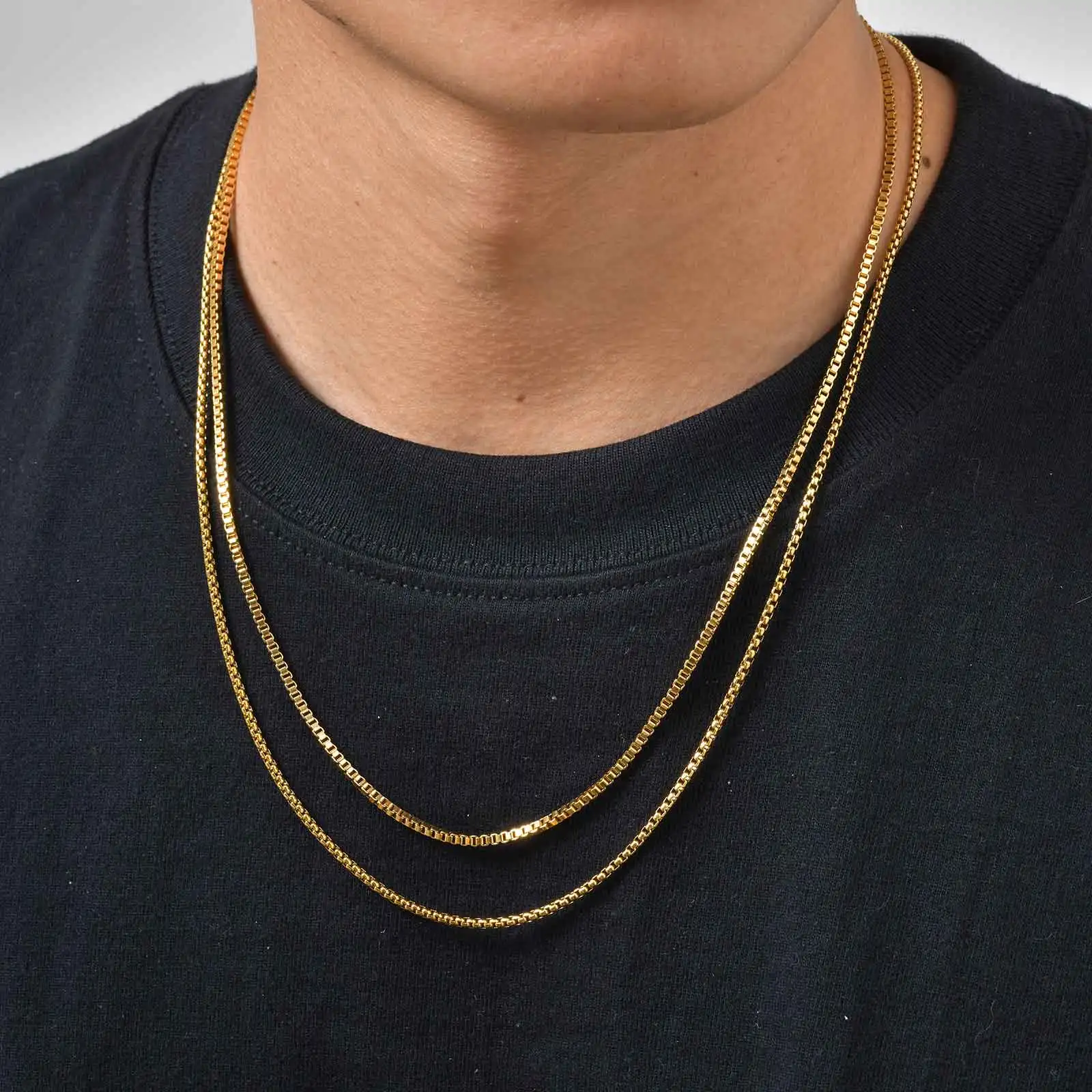 2 stks/set Dunne Ketting voor Mannen Jongens, Roestvrij Staal Goud Zilver Kleur Box Chain Halsbanden, stijlvolle Mannelijke Sieraden Gift