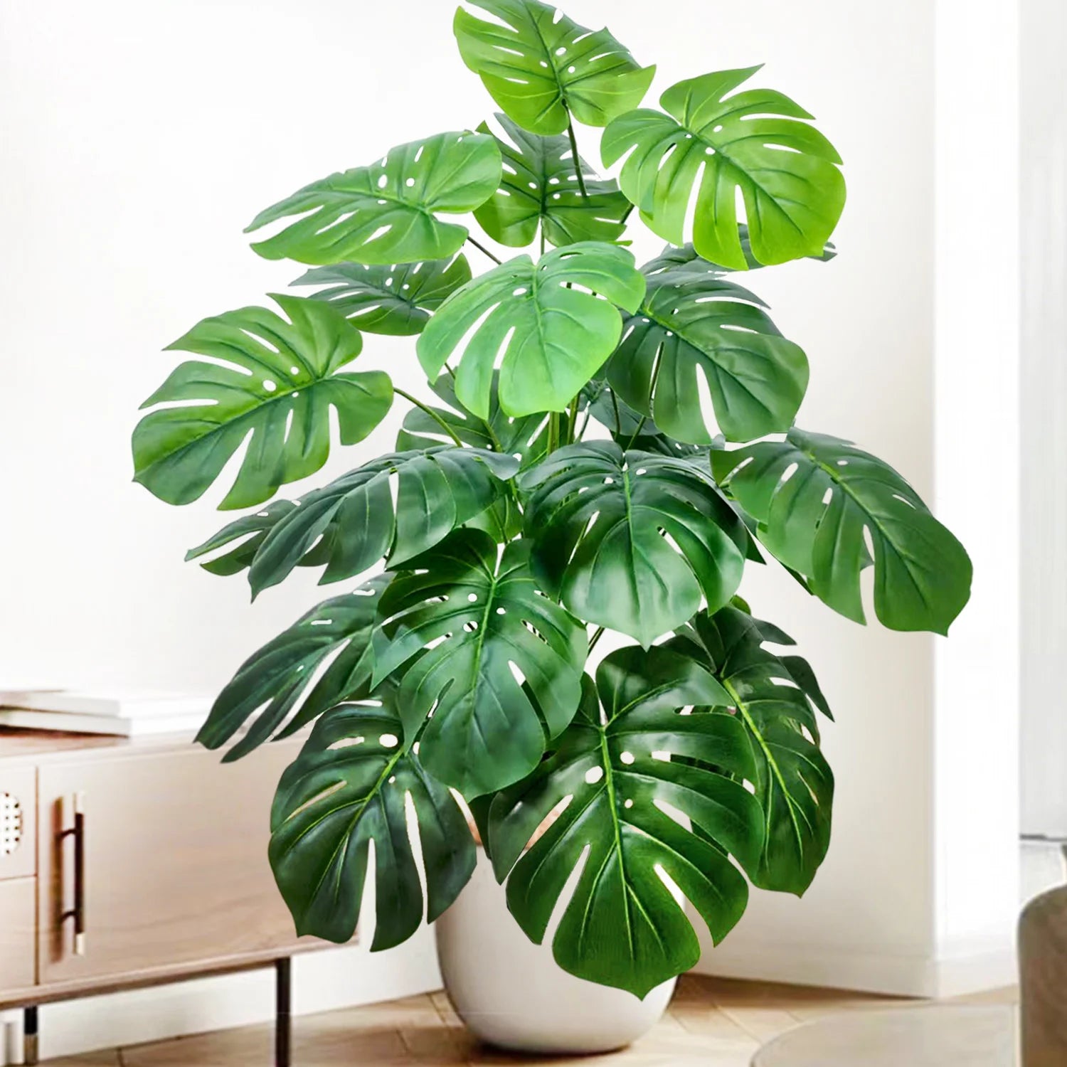 52-104cm(40.94in) Artificial Monstera Plant Fake Palm Tree Plastic Turtle Leaf Green Plant for Home Garden Room Office Decor