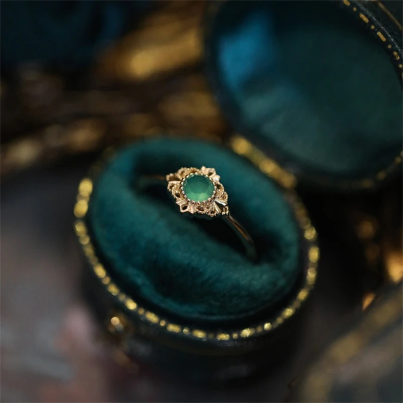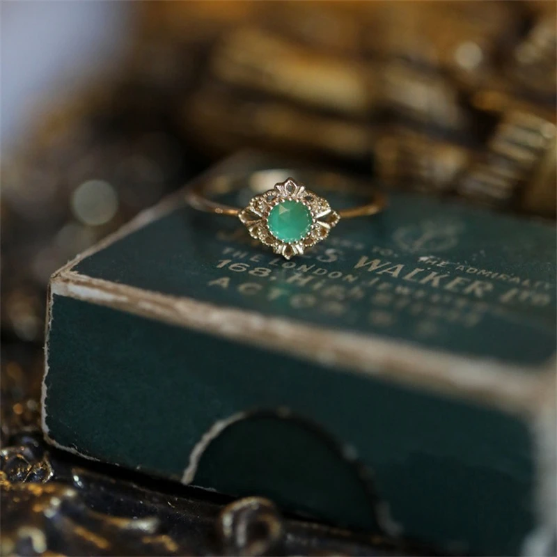 Franse Vintage Groene Kristal Verstelbare Ring Voor Vrouwen Rvs Knockle Ring Mode Sieraden Accessoires Groothandel Cadeau