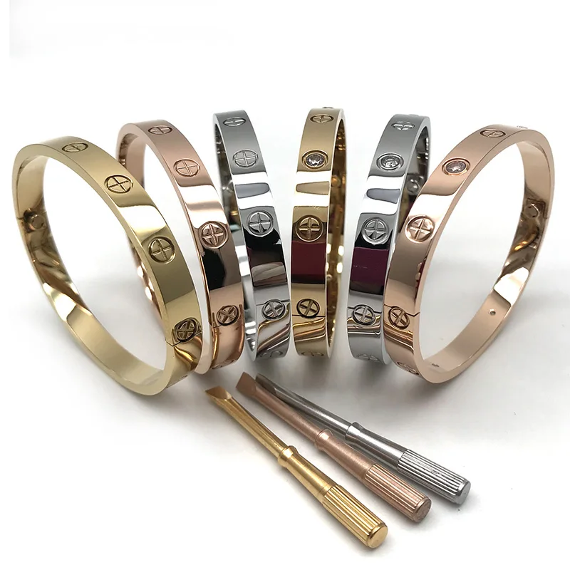Luxe merk roestvrij staal liefde schroevendraaier kruis nagel armbanden voor mannen vrouwen paar armbanden Valentijnsdag verjaardagscadeau