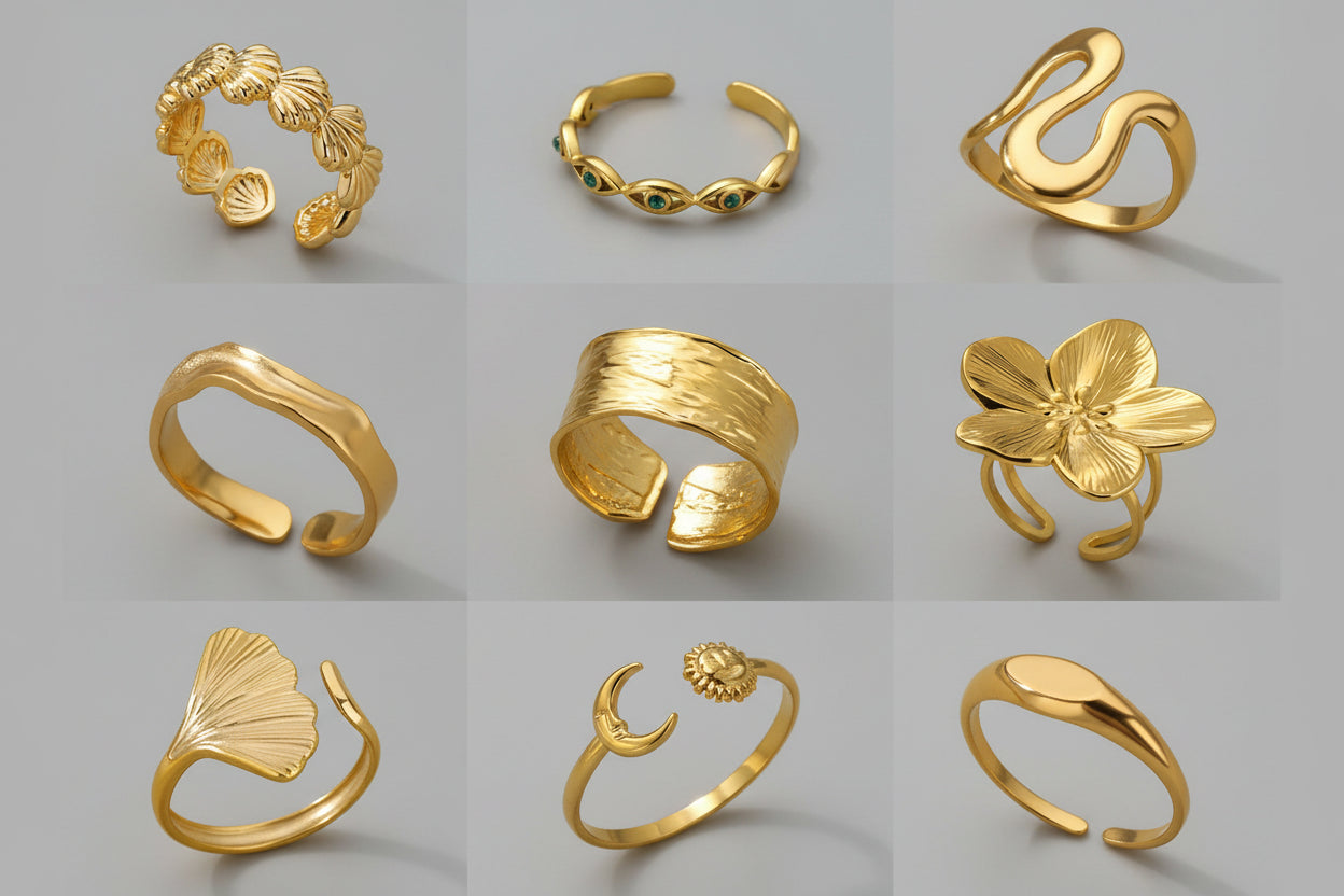 Bagues Ajustables en Acier Inoxydable doré 18K