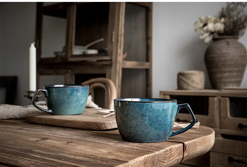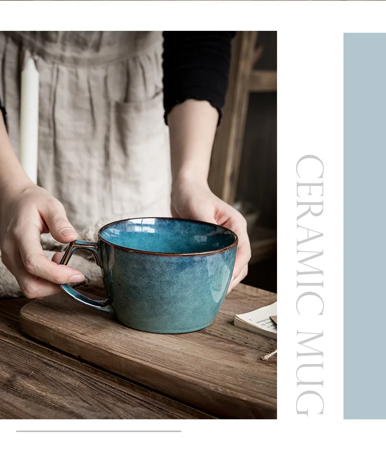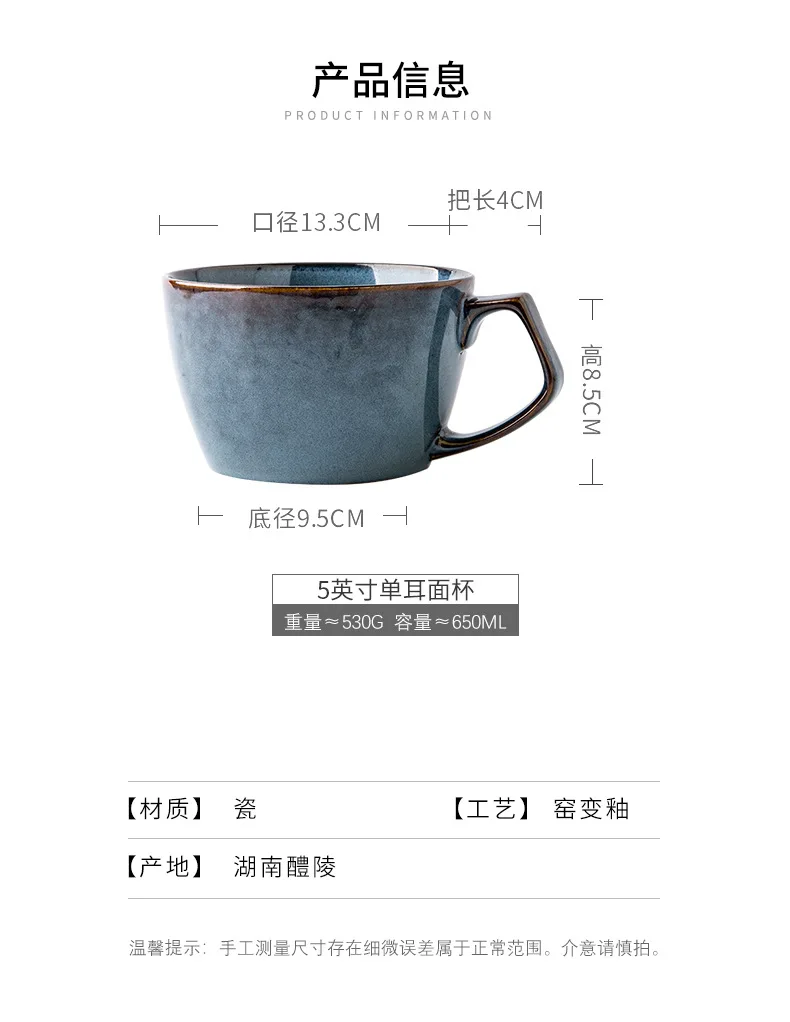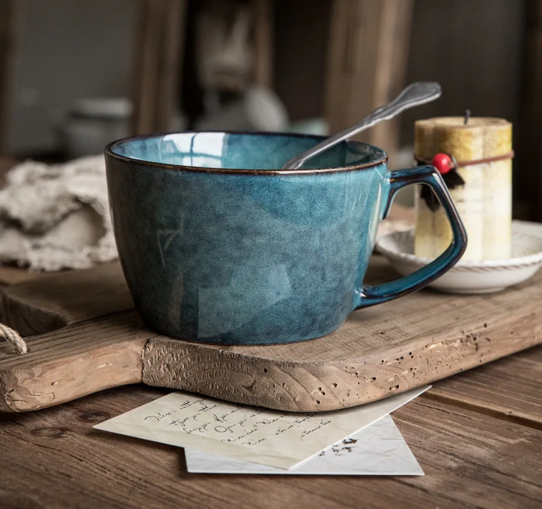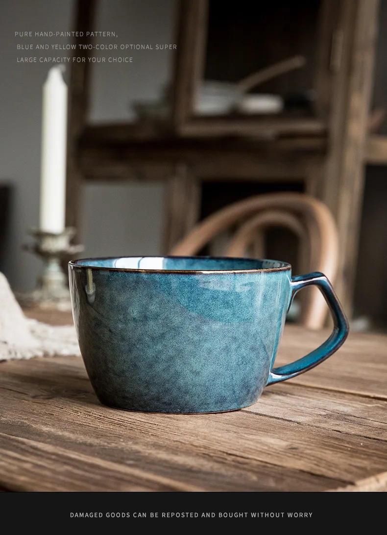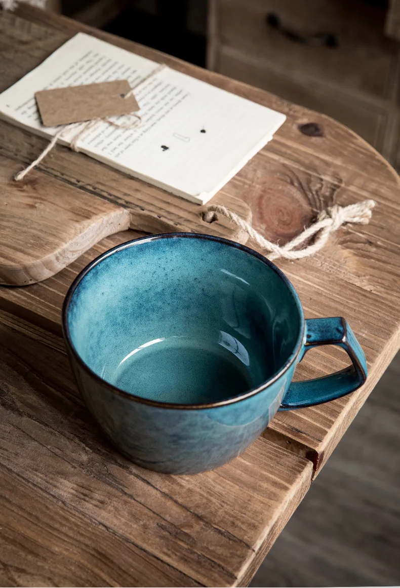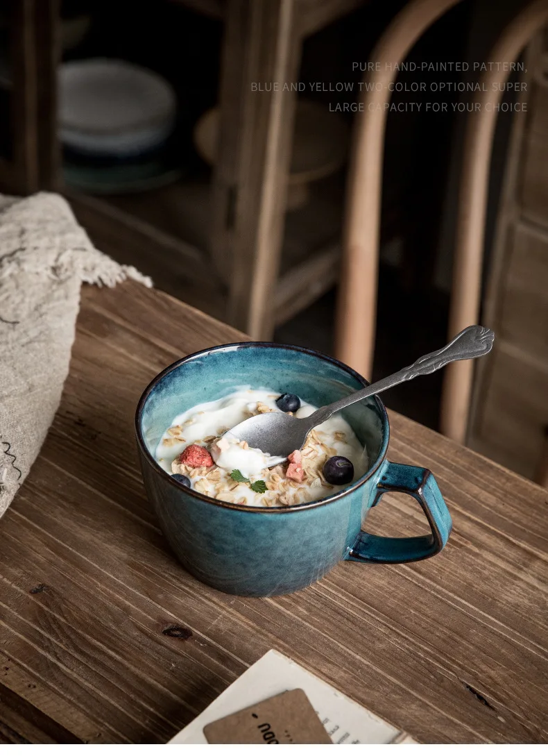 Sydney Blue Large Capacity Cup Home Large Ceramic Oat Cup Vintage Kiln Glazed Breakfast Bowl Mug